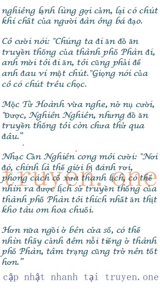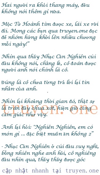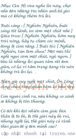 l Nhạc Cần Nghiên vừa nghe giọng điệu cưng chiều, lòng thấy nao nao.Con chưa người đàn ông nào dùng giọng đó nói chuyện với cô.Những câu nói đó như một luồng điện ấm áp chạm vào trái tim cô.