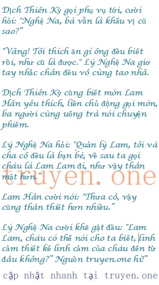 Sáng hôm sau là cuối tuần, Lam Hân đã có cuộc hẹn với Lý Nghệ Na, mới sáng sớm, cô đã nhận được địa chỉ Lý Nghệ Na gửi tới, là ở khách sạn Giang Thị.