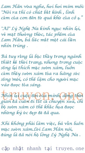 Lam Hân cười nói: “Cô giáo, con thiết kế quần áo không phải vì trận đấu, mà là sau khi biết về quá khứ của cô, muốn cho cô một chút hồi ức.”