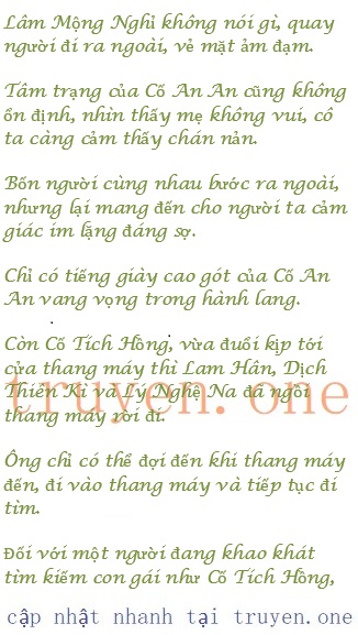 Lâm Mộng Nghỉ thấy cô ta quay lại, cười hỏi: “An An, con đã gặp bố con chưa? Sao bây giờ ông ấy vẫn chưa quay lại?”