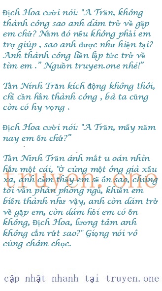 DÁN TRẤN) Địch Hoa ánh mắt ưu thương, lắc lắc đầu: “A Trăn, nhiều năm như vậy rồi, anh vẫn chỉ yêu em, đây là anh nói thật lòng, năm đó em cũng nhìn ra tình cảnh của anh, nếu anh ở lại, gia sản nhà họ Địch, sẽ bị người khác cướp mắt.Anh đi không lời từ biệt, là có nỗi khổ , hơn nữa chuyện năm đó em cũng rõ ràng, anh cũng không còn cách nào khác, A Trăn.”