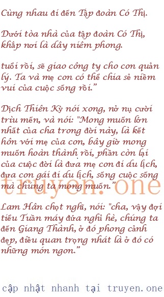 Dịch Thiên Kỳ mỉm cười: “Lam Lam, nếu như thật sự muốn cảm ơn ta, vậy thì hãy có gắng học quản lý, cha lớn tuổi rồi, sẽ giao công ty cho con quản lý. Ta và mẹ con có thể chia sẻ niềm vui của cuộc sống rồi.”