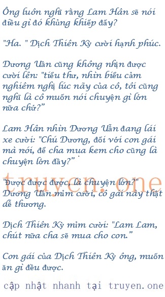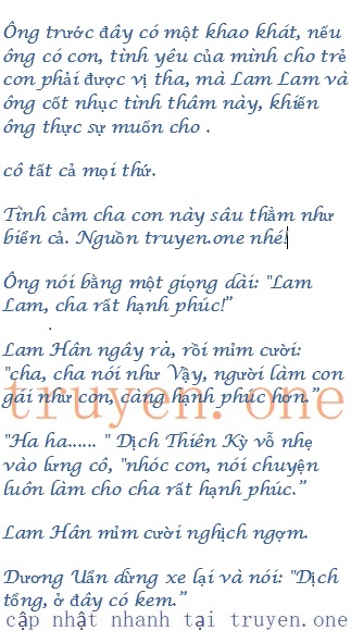 Ngay sau đó, Dịch Thiên Kỳ cầm một cây kem dâu tây trở lại, đưa cho Lam Hân, “nhóc con, ăn đi, sau này chỉ cần trời nắng, thì cha sẽ mua cho con.”
