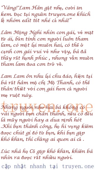 Lâm Mộng Nghi nghe con gái nói vậy thì vô cùng vui mừng, “Lam Lam, nghe con nói như vậy, mẹ an tâm, nhưng những gì nên cho con, mẹ vẫn muốn cho, con là con gái mẹ.”