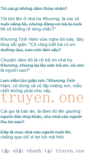 Lam Hân nghe những lời này, không chút đồng tình: “Cô có nhiều tính xấu như vậy, cũng không tới phiên tôi đến chỉ điểm, mà cũng chẳng liên quan gì đến tôi cả.