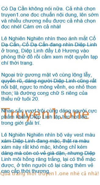 Diệp Linh không quay lại, tiện tay chọn một chiếc váy hai dây: “À, Cố Dạ Cần thích Lê Nghiên Nghiên, hôm thành niên ây, anh ta năm trên người tớ gọi tên Lê Nghiên Nghiên.”