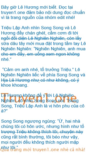 Song Song tìm một chỗ ngồi xuống, đưa đũa cho Lê Hương, cười nói phóng khoáng: “Lê Hương, đừng để bọn họ ảnh hưởng, kỳ tích sinh ra từ tranh luận, chờ ba ngày nữa, chúng ta chói mù mắt chó của bọn họt”
