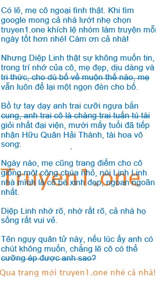 Bác gái Cố luôn mắng mẹ cô, nói mẹ cô là hồ ly tinh, là đồ đê tiện trơ trẽn, cho bố cô đội nón xanh, còn lên giường với bác trai Cố, vân vân… Sau đó, bác gái Cố lại bắt đầu mắng cô, nói cô là con hoang, là đồ đê tiện con, lớn lên cũng sẽ quyền rũ đàn ông lên giường, giống loại như mẹ cô… Cô dừng thấy bác trai Cố đánh bác gái Cố, một cái tát dữ dội tát bác gái Cố ngã khỏi xe lăn, cô nhìn bác gái Cố luôn vênh váo ngạo mạn vừa khóc vừa cười, rất giống người điên, rất đáng giận, cũng… rất đáng thương… Diệp Linh dần lớn lên, bắt đầu hiểu lời bác gái Cố nói, mẹ cô và bác trai Cố ngoại tình, năm đó, vụ ngoại tình này dẫn tới hai mạng người, hủy hoại đôi chân của bác gái Có, anh trai ruột của cô mát tích, cô thành trẻ Nhưng, tất cả đã thay đồi.