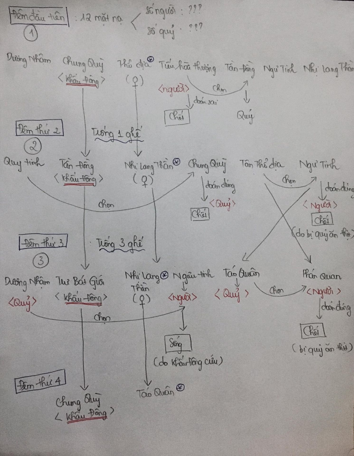 Vì muốn thu được tín nhiệm của người nên đám quỷ cũng ngụy trang hết thành người. Do tính chất công bằng của game nên quỷ cũng không biết đâu mới là đồng bạn của mình nên cũng chỉ có thể dựa vào những tiếp xúc ban ngày để xác định ai là người.