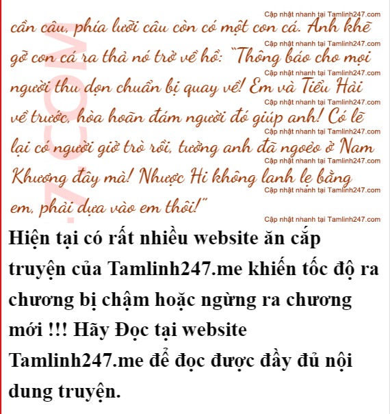 Anh đang cầm cần câu cá trong một cái hồ thì bỗng Triệu Vô Cực từ ngoài hớt hải chạy vào. Hắn chẳng buồn để ý Mạc Phong đang ngồi bên ngoài mà cứ thế lao vào trong nhà: “Thiếu chủ! Thiếu chủ!”
