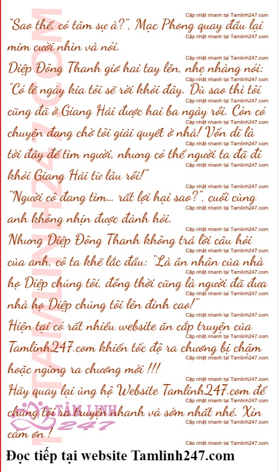 “Xong ngay!”, Mạc Phong ngoái đầu nhìn Mộ Dung Trầm Chương cười xấu xa: “Vậy chúng tôi đi trước nhé, cậu chủ Mộ Dung!”