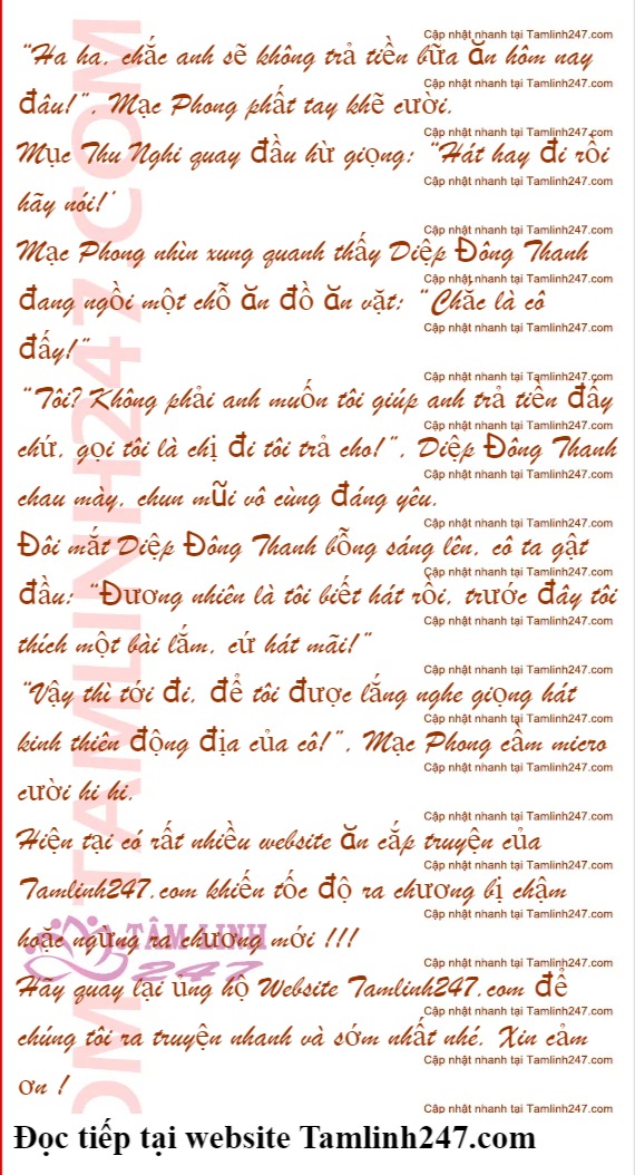 Mạc Phong cảm thấy cạn lời. Khuôn mặt như thiên thần, giọng hát như ác ma. Thượng đế khi tạo ra cô có phải là bị nhầm lẫn không?
