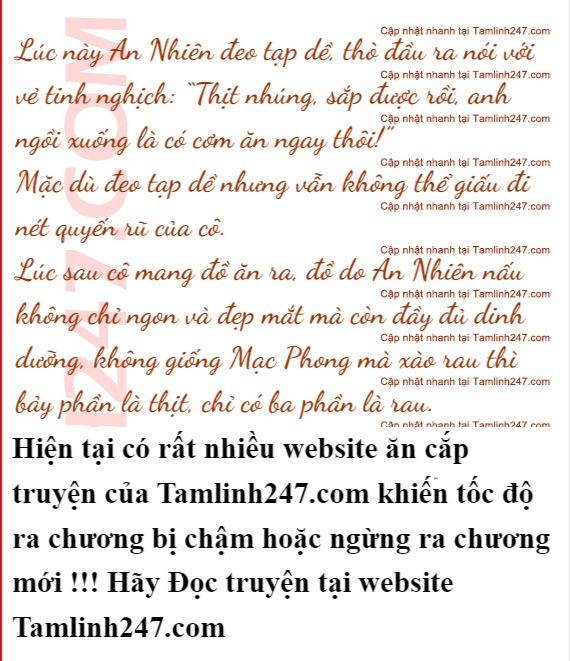 Đương nhiên sau khi An Nhiên tới, Mạc Phong không còn cơ hội xuống bếp nữa. Trước đây khi về nhà, ai cũng đợi anh vào nấu cơm.