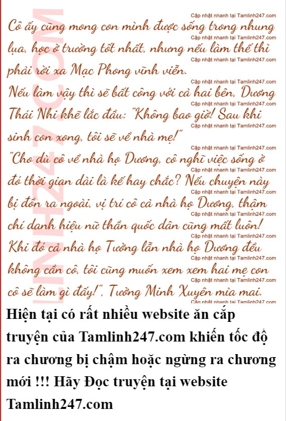 Vì cô ấy đang mang thai nên đã đuổi Tưởng Minh Xuyên sang phòng sách, bố mẹ hắn cũng rất tán đồng, có lẽ nể tình Dương Thái Nhi đang mang thai. Nếu biết đứa bé này không phải con của Tưởng Minh Xuyên, chẳng biết họ sẽ tức giận tới mức nào nữa.