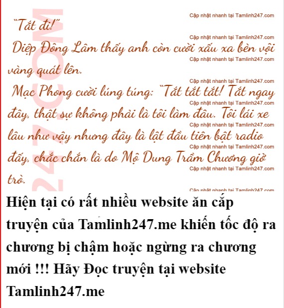 Lúc này Mạc Phong cảm thấy ấm ức lắm. Chuyện quái gì thế này. Anh lái xe của mình lâu như vậy nhưng đây là lần đầu tiên bật radio, ai mà biết là có những âm thanh như thế phát ra chứ.