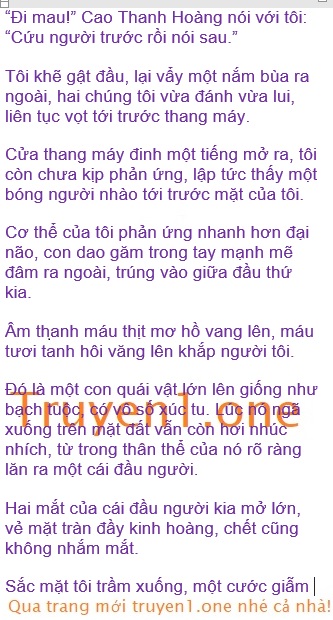 Đám xác máu chen lấn nhau tiến vào chỗ này, ngay lúc cửa thang máy sắp sửa đóng lại, nửa người trên của một con xác máu chui vào, móng vuốt sắc bén nhằm về phía chúng tôi cào loạn một hồi.