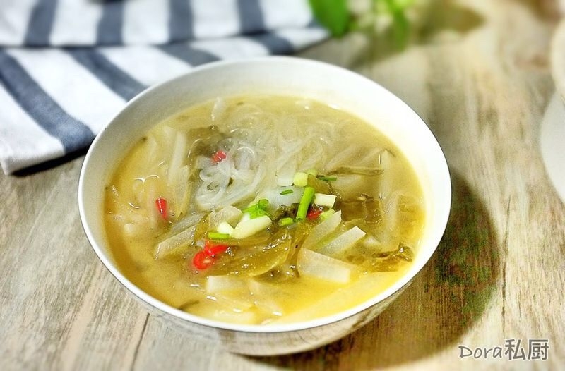 Hạ Kiến Vi xào thịt lợn nấu chín hai lần, còn Lục Tri thì xào cà chua với trứng cùng thịt lợn xé, và nấu một nồi miến dưa chua. (*)