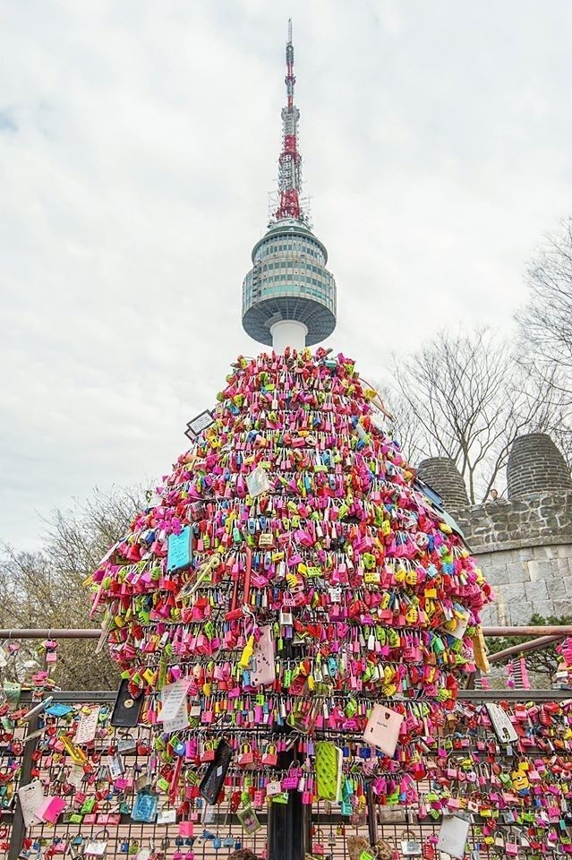 Sau đó cả hai cùng nhau đến tháp N Seoul còn gọi là tháp Namsan. Cả hai đi xe lên núi chơi rồi lân la vài vòng. Đột nhiên Tiểu Bạch dừng chân ở sân thượng ngay lối vào của tháp.