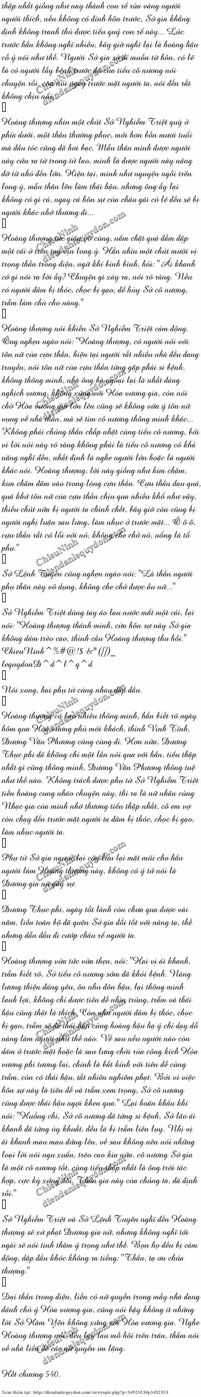 Phụ tử Sở Nghiễm Triệt cũng không có bình thân, Sở Nghiễm Triệt lại dập đầu một cái, nói: "Hoàng thượng, trưởng tôn nữ Hàm Yên của cựu thần bởi vì khi còn bé bị người hãm hại đến si ngốc, mặc dù si bệnh đã khỏi hẳn, nhưng con bé một đoạn trải qua không chịu nổi này lại vĩnh viễn cũng không gạt bỏ được. Cựu thần cảm thấy, vì thể diện hoàng thất cùng Hòa vương gia, Hàm Yên thực không nên trèo cao cửa quý hôn này." ChieuNinh:{}[email protected]#$ &^* lequydonD^d^l^q^d