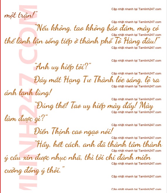 Hạng Tư Thành không nói gì, Điền Thịnh cho rằng anh sợ, càng nói lời khích bác: “Thế nào? Sợ rồi? Nếu sợ rồi, thì ngoan ngoãn cút đi!”