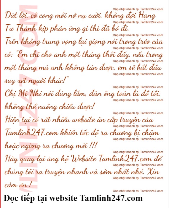 Nhìn dáng vẻ thẹn thùng của Vân Tịnh Nhã, Hạng Tư Thành sực hiểu ra. Đúng thế, ở bên Vân Tịnh Nhã lâu như thế rồi, nhưng anh chưa bao giờ nói tiếng yêu cô.