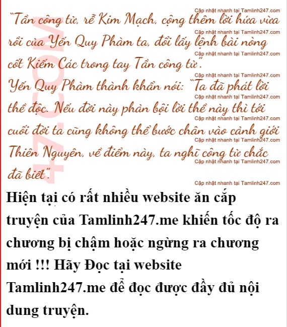 Tần Ninh chậm rãi lên tiếng nói: “Ta nói rồi, cương quốc Nam Yến chẳng là cái gì cả. Kể cả Kiếm Các thề thốt với ta điều gì thì ta cũng không hiếm lạ. Ta tự bảo vệ mình là đủ rồi”.
