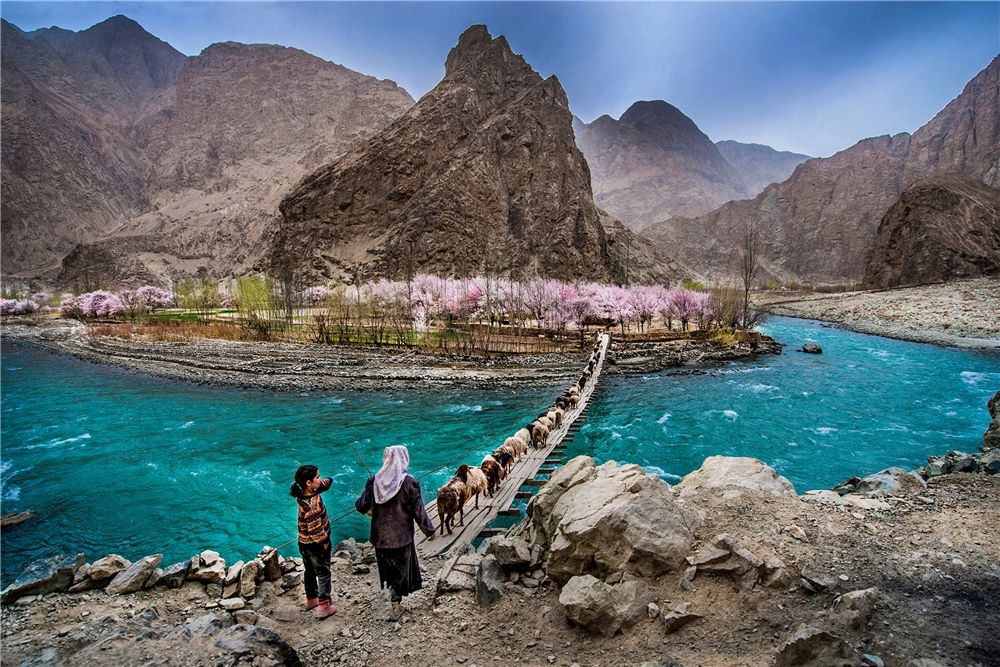 Những ngôi nhà gỗ mái đỏ nối tiếp nhau, và những người chăn gia súc trong trang phục truyền thống Tajik đang vội vã lùa đàn cừu.