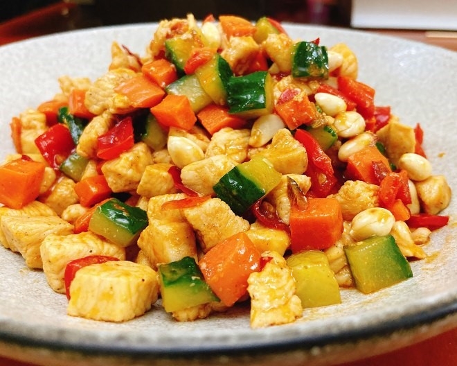 “Đây là gà Cung Bảo* sao? Hình như trước kia ăn gà Cung Bảo không phải vị này, cũng không phải là hoàn toàn không giống nhau, nhưng mà cái này hình như thơm hơn nhiều!”