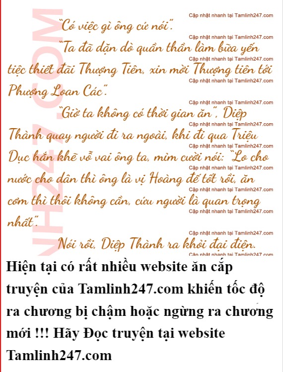 “Bệ hạ , mạt tướng đã dốc hết sức rồi”, phía trước Triệu Dục, một người đàn ông trung tuổi quỳ gối, khoác trên mình bộ áo giáp, nói: “Một trăm nghìn đại quân trinh phạt hàng trăm dặm nhưng đều không tìm ra tung tích của đám người đó”.