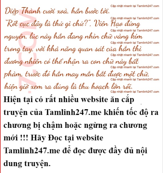 Thế rồi Diệp Thành nhanh chóng tới bên một sơn cốcc, nhìn từ xa hắn đã trông thấy khí hải kim quang đang cuộn trào và còn có thể trông thấy từng con chữ màu vàng kim to bằng móng tay.