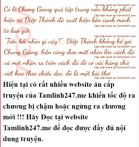 Diệp Thành nhìn kĩ thì nhận ra đó là Chung Giang, bóng người của Chung Giang hơi gù, ông ta cứ thế tĩnh lặng đứng dưới vách đá, không biết đang nhìn gì.