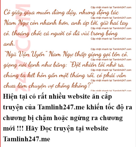 “Được, là tôi không hiểu” Nam Ngự tức đến mức bật cười, đột nhiên anh đứng dậy khỏi xe lăn, nắm lấy cổ tay Ngũ Vận Uyển hất cố lên giường: “Nhưng tôi biết em là vợ tôi!”