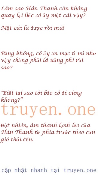 Sau khi Hàn Thanh đi được rất nhiều bước lại phát hiện ra không thấy bước chân bên cạnh mình, vừa định dừng lại xem xét đã nghe thấy một chuỗi bước chân ở đằng sau.