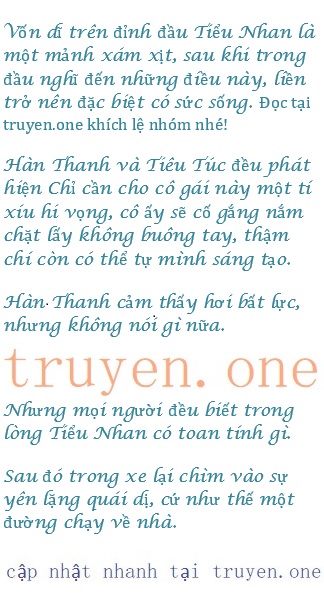 Trong lúc nhất thời Tiểu Nhan cảm thấy chán nản vô cùng, chỉ có thể rũ mắt ngồi ngay ngắn lại, lần này cô không còn chú ý Hàn Thanh nữa, mà nhìn ra bên ngoài cửa sổ.