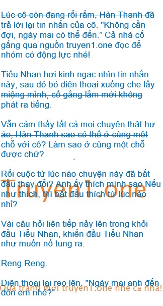Sau đó Tiểu Nhan lại cầm điện thoại lên, nghe đi nghe lại chỉ duy nhất đoạn ghi âm mà Hàn Thanh gửi qua lúc này, nghe mãi nghe mãi rồi lại mím môi cười.