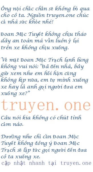 Ai biết thế mà Đoan Mộc Trạch lại lạnh lùng nói: “Nếu như em còn lề mề nữa thì anh sẽ không quan tâm tới em.”