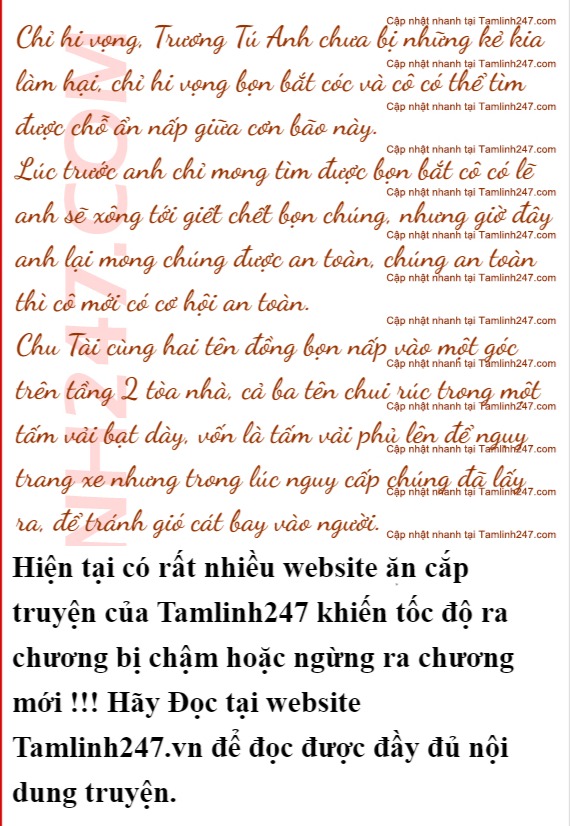 Sau khi ngắt điện thoại, nét mặt của Thịnh Thiên Vĩ càng thêm tệ. Mặc gió cát đang tới gần, anh lao đi điên cuồng tìm Trương Tú Anh.