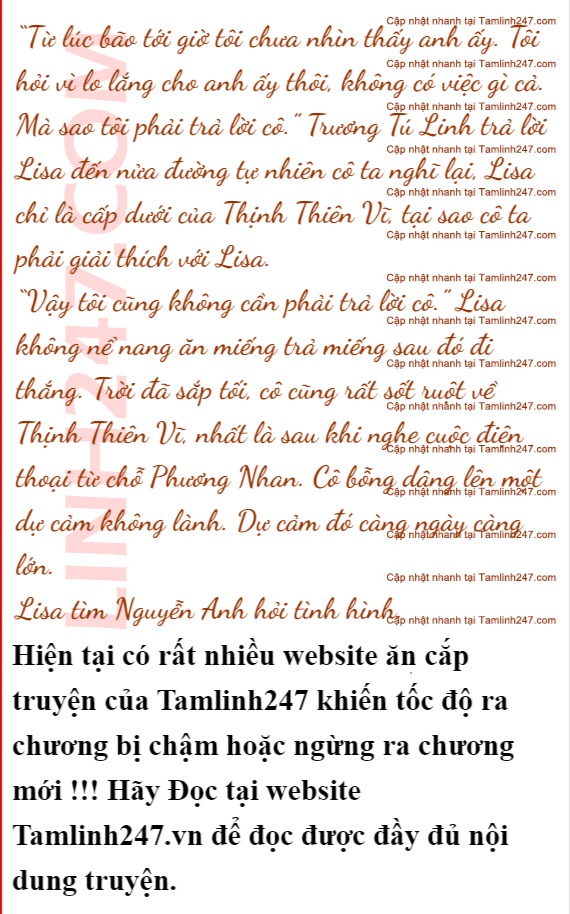 “Giám đốc Trường tìm Thịnh tổng của chúng tôi có việc gì sao?” Lisa vốn không ưa Trương Tú Linh nên xưng hô với cô ta càng thêm khách khí.