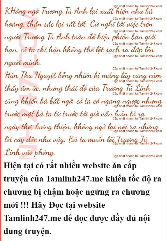 Trong lòng Trương Tú Linh dâng lên cảm giác ghen tị khó nói thành lời. Mặt cô ta hết trắng lại đỏ. Hàn Thu Nguyệt biết tính của Trương Tú Linh nên vừa xoa tay cô ta vừa cưng nựng.