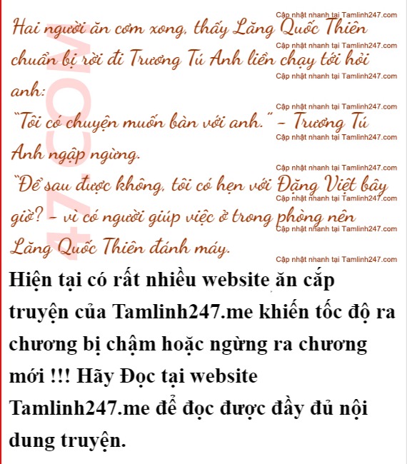 “Tôi đã điều tra được một số chuyện” - Đặng Việt định báo cáo luôn thì bị Lăng Quốc Thiên chặn lại.