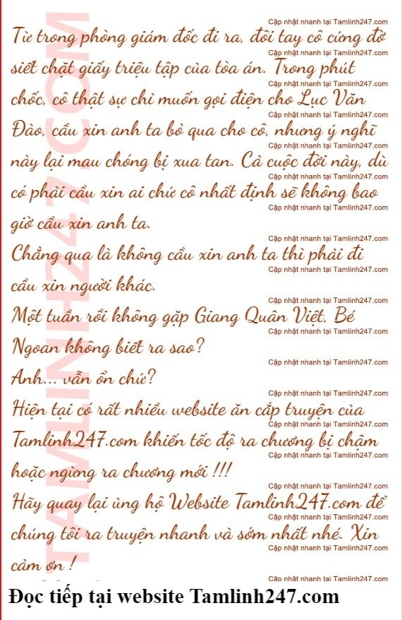 Lam Cảnh Y khẽ nở nụ cười cay đắng, làm sao có thể chứ, cả hai người đàn ông đó đều sẽ không thích mình. Lục Văn Đào lấy mình làm chim nhốt trong lồng để hành hạ, dường như coi mình là kẻ thù của anh ta không bằng, Giang Quân Việt thì lại càng không thể. Anh là tổng giám đốc kiêu ngạo của Giang thị, làm sao có thể thích một người phụ nữ đã ly hôn chứ, hơn nữa, hiện tại còn đang dây dưa chưa rõ ràng: "Tuyết Phượng, không thể nào, người phía trước là chồng cũ của tôi, còn người phía sau thì, có lẽ chỉ là...là... Một người bạn." Thật ra thì cũng không thể tính là bạn được, nhiều nhất cũng chỉ có thể coi là chủ nợ của cô, cô lại nợ tiền của Giang Quân Việt rồi.