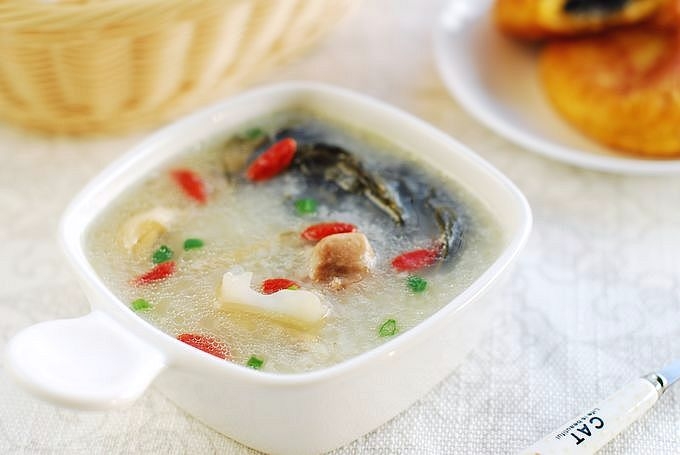 *Cháo xương mặn - 咸骨粥 là món cháo xương nổi tiếng của Quảng Đông, không chỉ thơm ngon mà còn dễ nấu, giá thành lại rẻ, có tác dụng giải nhiệt, bổ sung canxi. Xương để hầm cháo sẽ được rửa sạch, ướp muối, gừng và rượu để qua đêm nên mới có cái tên này.