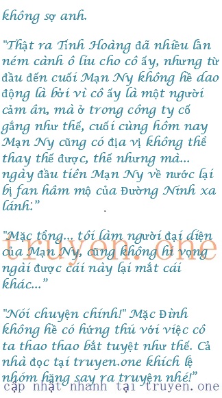“Người của Tinh Hoàng mua chuộc cô, còn thuận tiện nuôi lớn lá gan của cô, dám đàm phán trực tiếp với tôi như thế.” Mặc Đình nói xong, hạ mình ngồi xuống trên chiếc ghế sau bàn làm việc, nói tiếp: “Mặc dù cô không thích hợp làm người đại diện của Chân Mạn Ny, nhưng mà… tôi vẫn cứ quyết định để cô làm việc bên cạnh cô ta.”