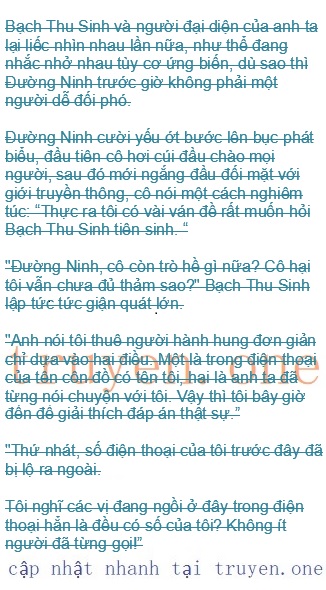 Trong phòng hội trường, đủ loại thảo luận không ngớt bên tai, đa số các phóng viên đều ôm sự tức giận với Đường Ninh, đồng ý thay Bạch Thu Sinh đòi lại công bằng …