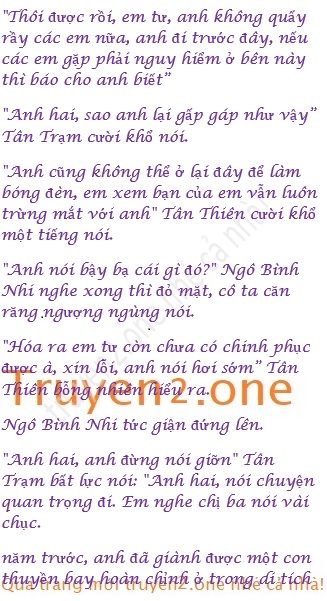 Hiểu lầm đã được giải quyết, đương nhiên Tân Thiên cũng sẽ không mơ ước đến bảo vật mà em trai mình lấy được, anh †a bay vào trong sơn động để giải thích với Tân Trạm và Ngô Bình Nhi một phen.