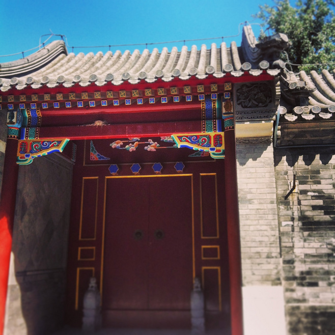 (*)Thùy hoa môn là một loại cửa tương đối được coi trọng trong Tứ hợp viện, hình thức đẹp đẽ giúp nó ngăn cách ngoại viện và nội thất của Tứ hợp viện. Thùy hoa môn được đặt tại đường trục chính, ở chính giữa phía bắc của ngoại viện, nằm trên bậc đá cao ba bậc hoặc năm bậc, dùng để ngăn cách phần trước và sau của viện. Phần phía trước viện là nơi chủ nhân tiếp khách, phần phía sau viện là nơi ở của những người còn lại trong gia đình, người ngoài không được ra vào, ngay cả đến người hầu nam cũng không ngoại lệ.