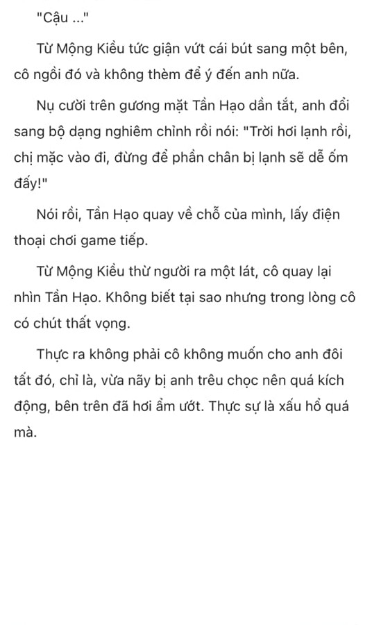 Từ Mộng Kiều lắc đầu, đáp: "Cậu ấy có thích tôi