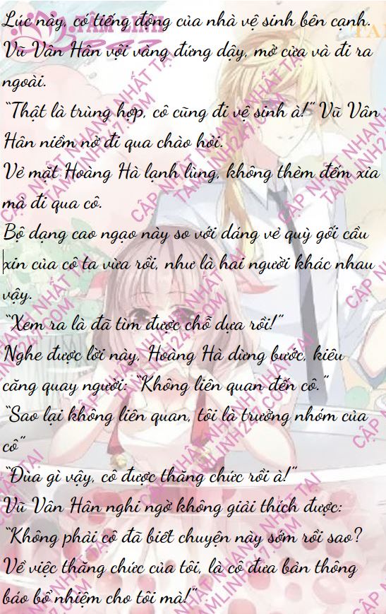 “Cô đã nói chỉ cần tôi được thăng chức thì sẽ không ai dám bắt nạt nhóm năm người chúng ta nữa mà!” Vũ Vân Hân bước đến gần cô ấy một cách mạnh mẽ: “Như vậy đồng thời chúng ta có thể phụ trách những hạng mục lớn hơn, tốt hơn, hai người phụ nữ cùng nhau khiến nhóm năm người lớn mạnh hơn, đây không phải là lời cô đã nói sao?”