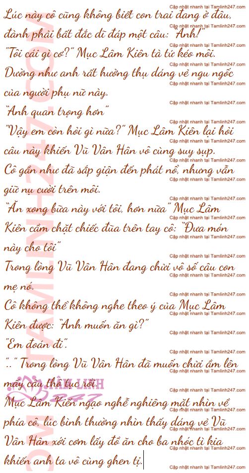 “Bị thiểu năng sao? Có tay có chân cả mà, sao chúng không tự đi được chứ? Mục Lâm Kiên lạnh lùng nói một câu, suýt nữa khiến Vũ Vân Hân sặc cả cơm.