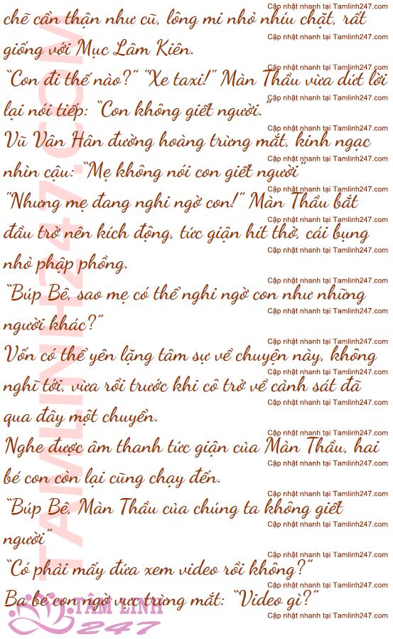 Vũ Vân Hân về đến nhà, nhìn thấy ba bé con đang ôm nhau ngủ trên giường. Dáng vẻ hồn nhiên đáng yêu kia, cô không đành lòng đánh thức bọn chúng.
